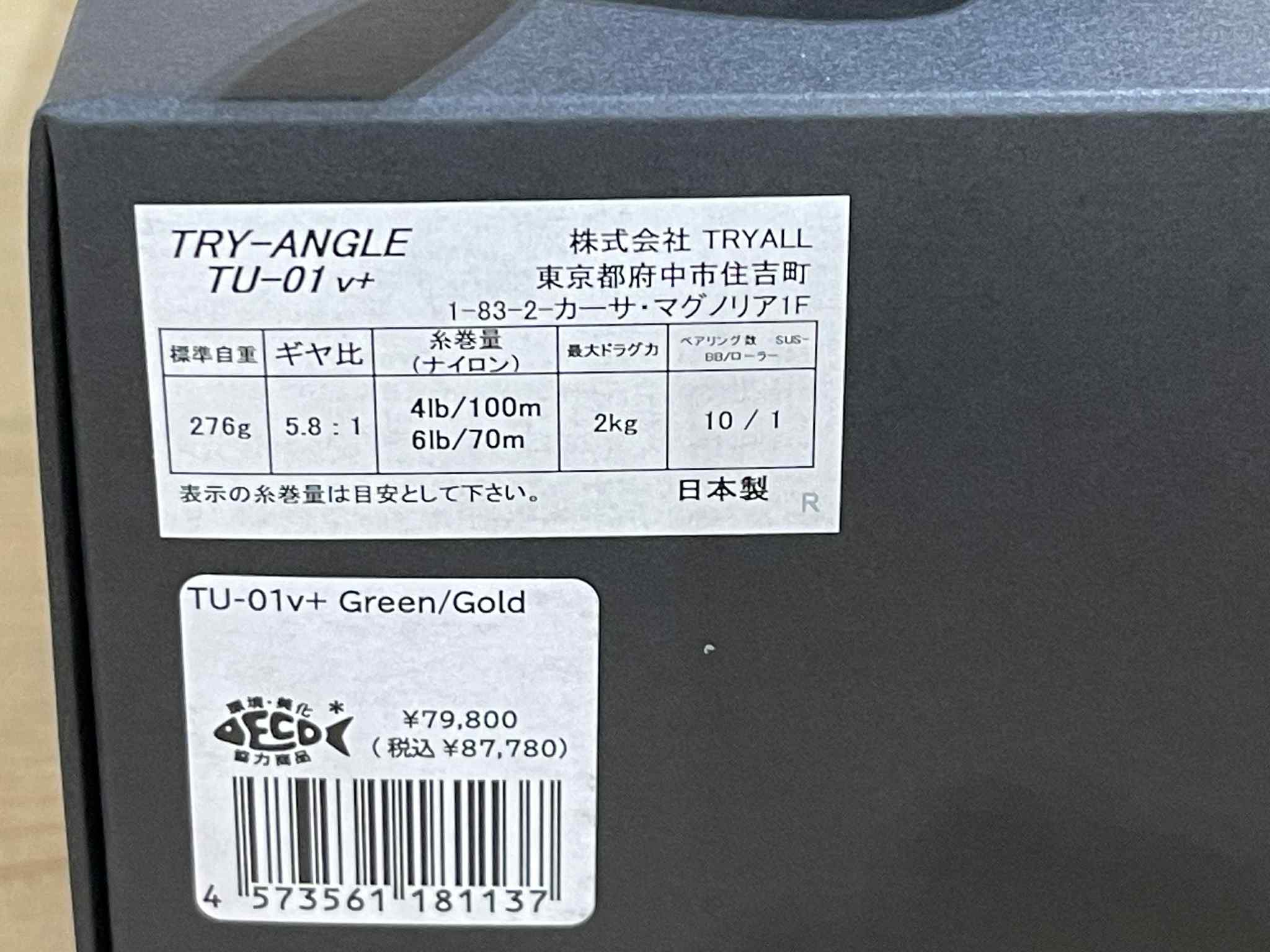 トライアングル 2026年新作 アンダースピンリール TU-01v+ Green/Gold 送料込み